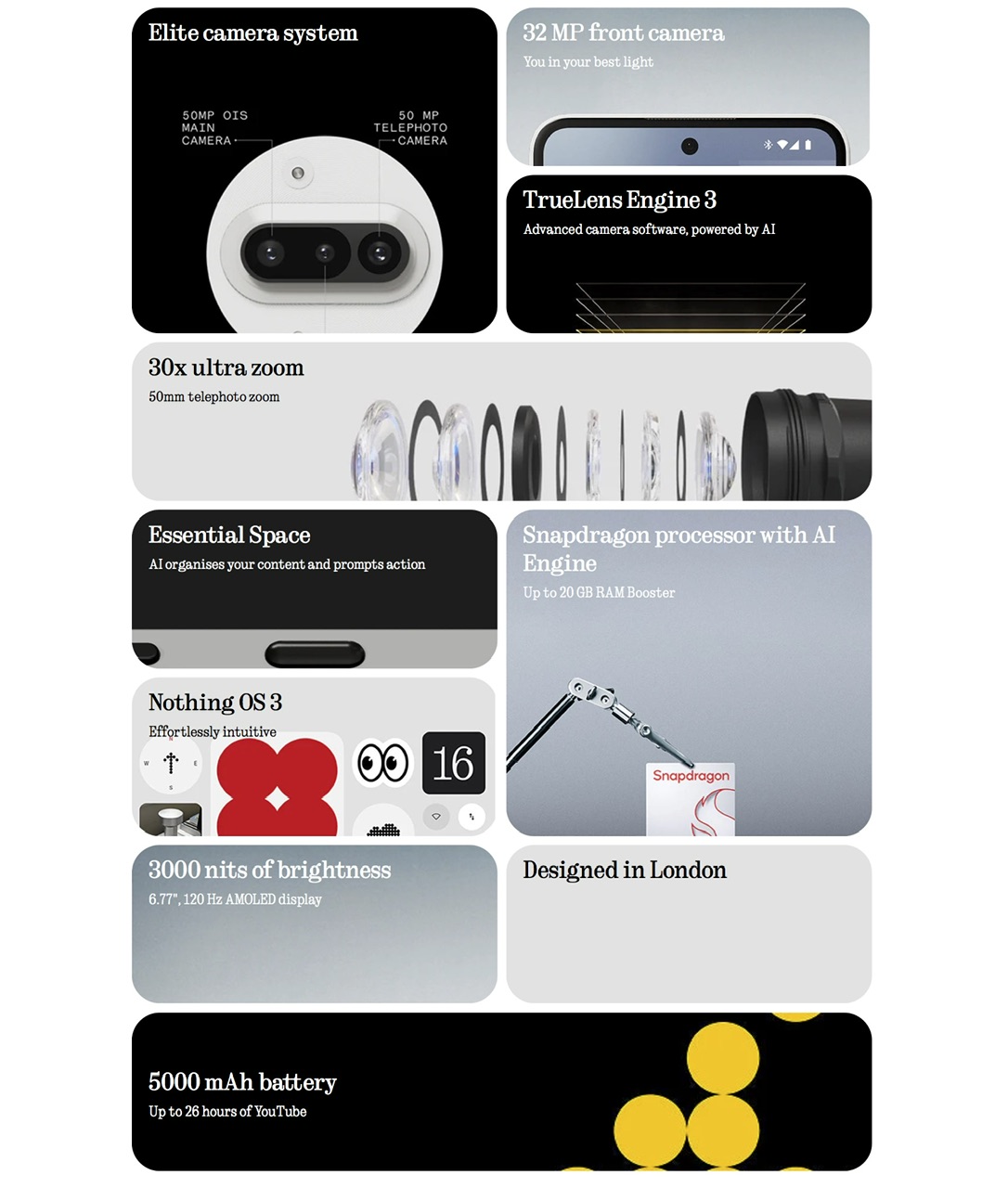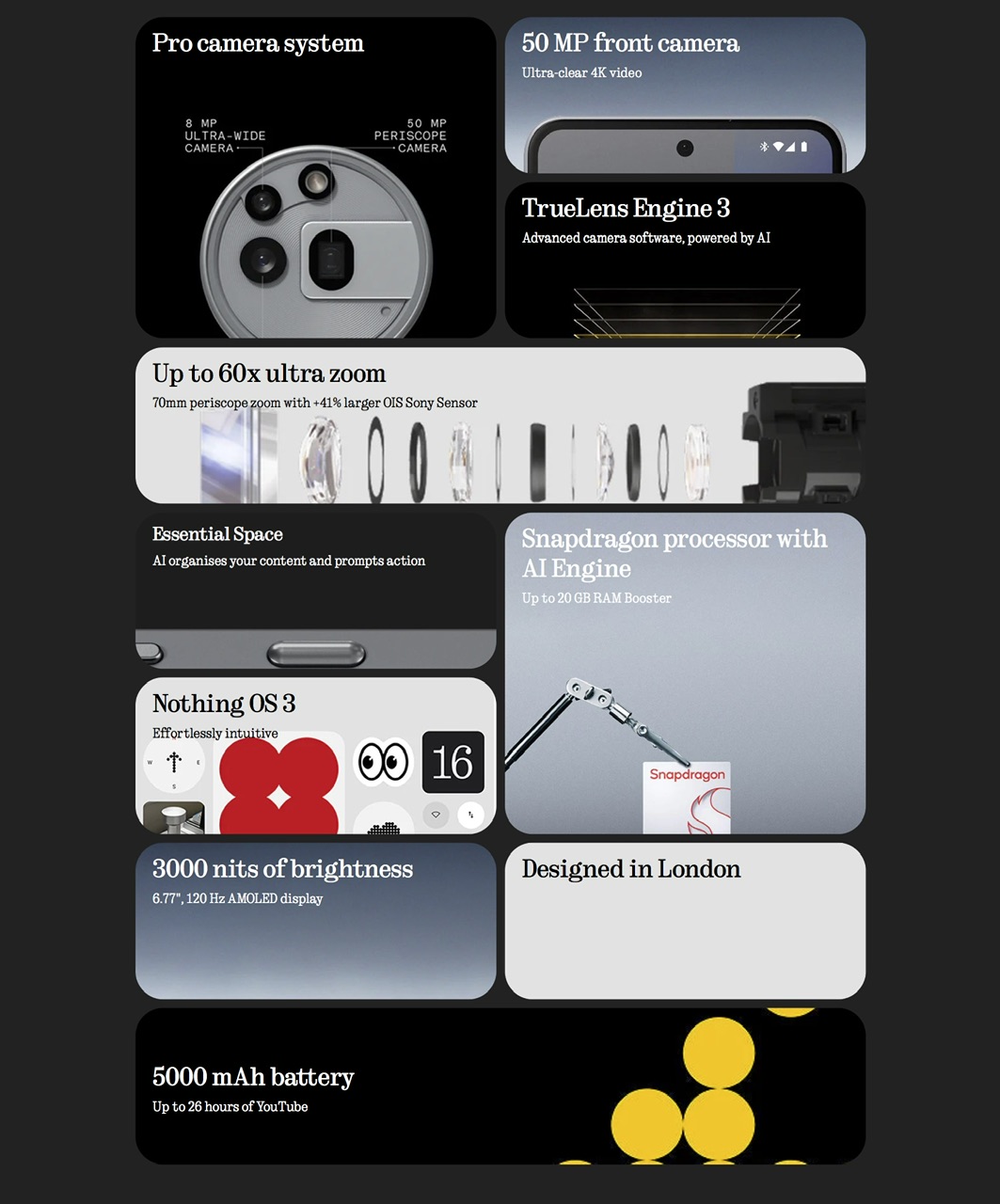 Dalam pada itu, Phone (3a) juga memiliki bateri 5,000mAh dengan pengecasan pantas 50W, penarafan IP64, Essential Key, 3 kemaskini Android dan 6 tahun kemaskini berkala.