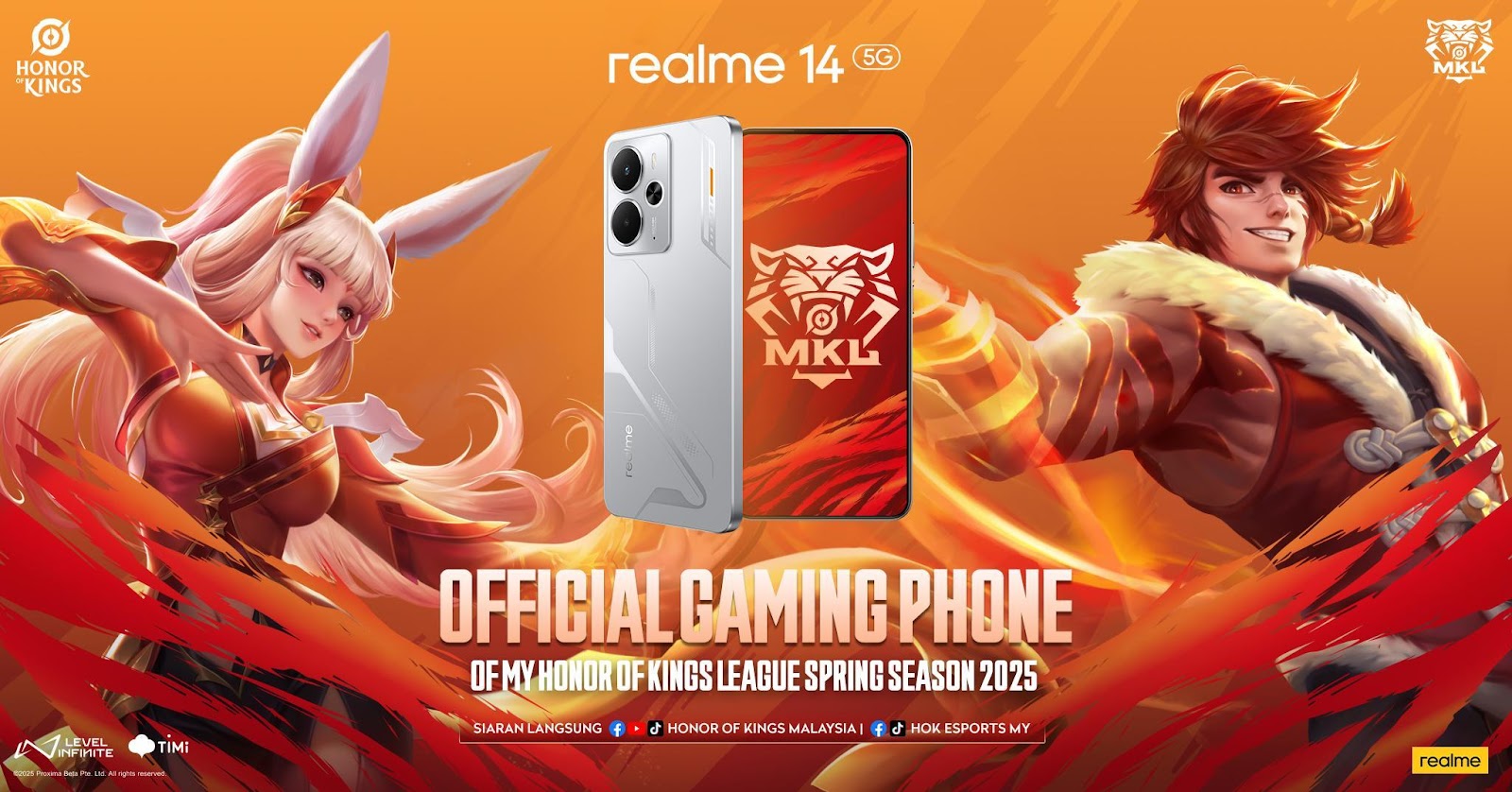 realme telah mengumumkan kerjasama bersama permainan video popular Honor of Kings, dimana realme 14 5G adalah telefon pintar rasmi bagi kejohanan Honor of Kings League Spring Season 2025 (MKL) .