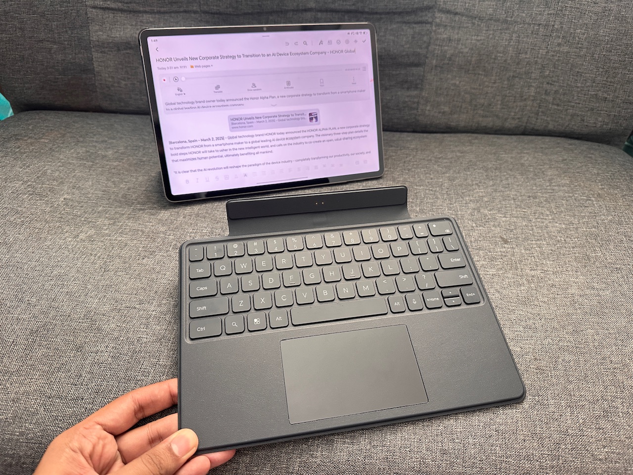 Mengulas mengenai kegunaan HONOR Touchpad Keyboard ini, ianya menawarkan pengalaman menaip yang sangat selesa dimana pada pendapat kami menaip pada tablet ini adalah lebih baik berbanding pada tablet lain yang pernah kami gunakan dan memiliki touchpad yang menawarkan fungsi seperti tetikus serta sokongan pelbagai gesture lain adalah kelebihan yang pasti anda hargai.