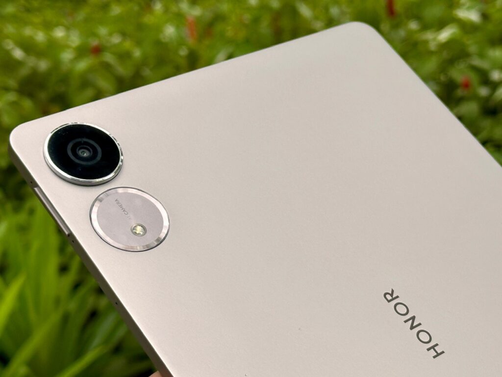 HONOR Pad V9 menampilkan reka bentuk yang sangat premium dengan penggunaan keluli pada keseluruhan permukaan belakang dan sisi. Panel belakang tablet HONOR mempunyai kemasan yang sangat premium dan terdapat modul kamera yang mana ianya memiliki dua gelung yang menempatkan satu sensor 13MP dan satu gelung yang menempatkan lampu flash dengan tulisan AI Camera.