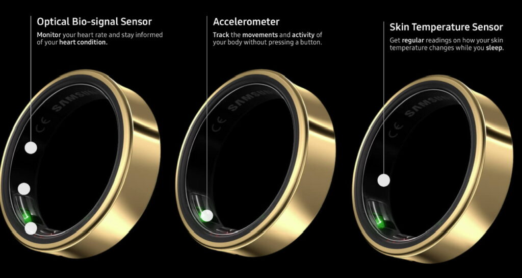 Seterusnya, Galaxy Ring ini mempunyai tiga sensor iaitu sensor Optical Bio-signal untuk merekod kadar degupan jantung, sensor suhu kulit untuk merekod perubahan suhu badan ketika tidur dan accelerometer untuk merekodkan langkah dan larian anda secara automatik.