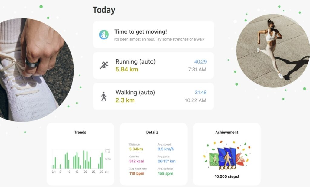 Samsung Galaxy Ring mempunyai kebolehan untuk mengesan aktiviti kecergasan yang dilakukan secara automatik namun ketepatan metrik bagi aktiviti yang dilakukan adalah sedikit tidak tepat.