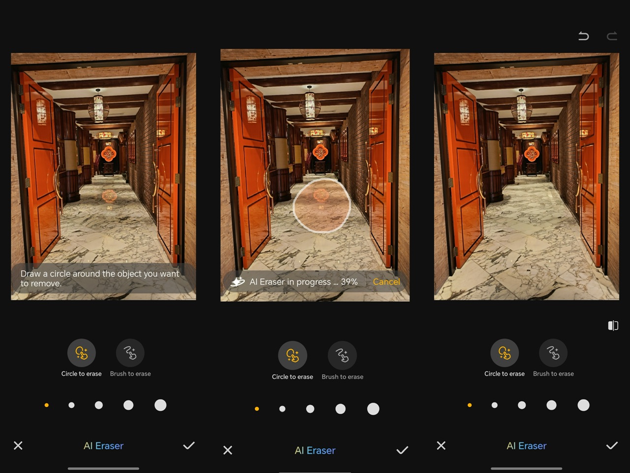 Dengan hanya membulatkan objek yang tidak dikehendaki, AI Eraser mampu membuang objek tersebut dengan pantas bagi menonjolkan subjek dalam gambar.