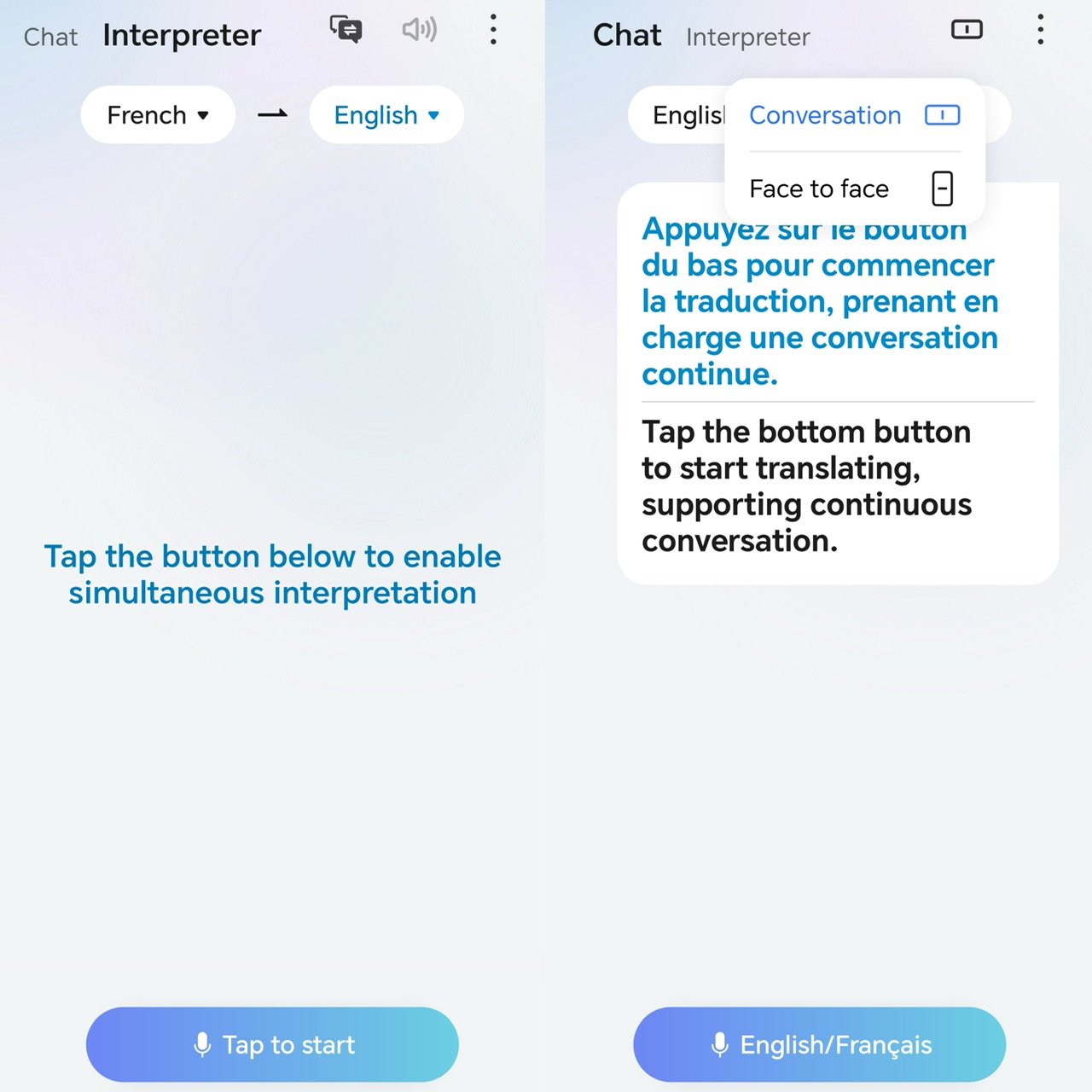 AI Translate mengatasi batasan bahasa dalam perbualan . Ianya menawarkan sokongan terjemahan pantas dalam 13 bahasa, termasuk Bahasa Malaysia, Jepun dan Korea semasa perbualan bersemuka dan HONOR juga komited untuk menawarkan sokongan bagi lebih banyak bahasa dari semasa ke semasa. Terdapat dua mod (audio) Chat yang ditawarkan iaitu Conversation dan Face to Face manakala Interpreter (teks) pula adalah terjemahan secara langsung dari audio yang dicakap.