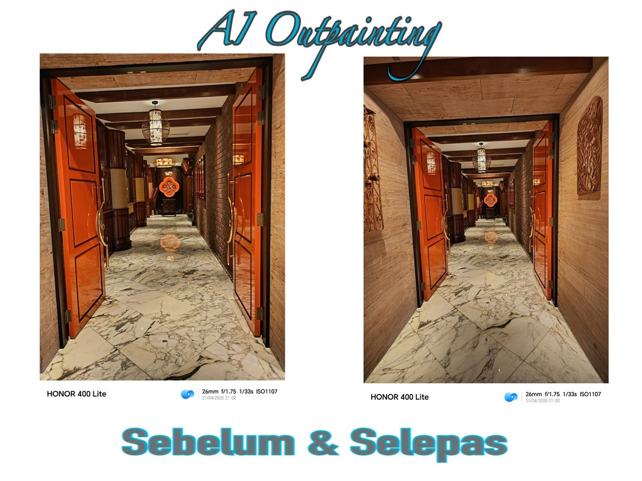 Seterusnya, telefon pintar HONOR ini juga disertakan dengan ciri AI seperti AI Eraser dan AI outpainting yang mempunyai fungsi seperti berikut :