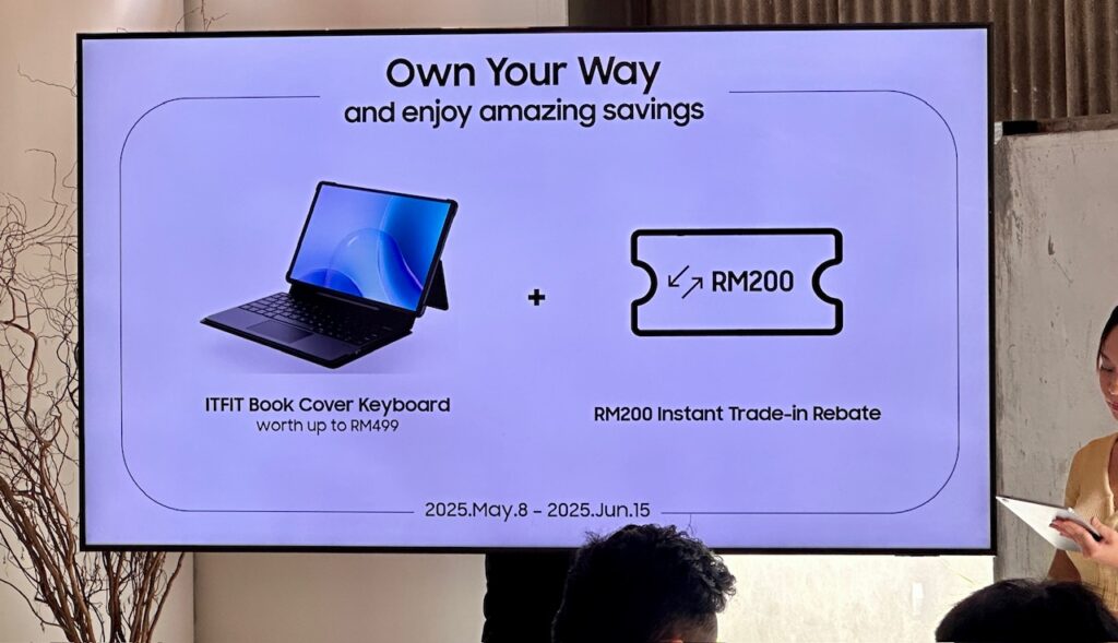 Bermula 8 Mei sehingga 15 Jun, setiap pembelian Galaxy Tab S10 Series akan menerima ITFIT Book Cover Keyboard bernilai sehingga RM 499 dan rebat trade-in tambahan bernilai RM 200.