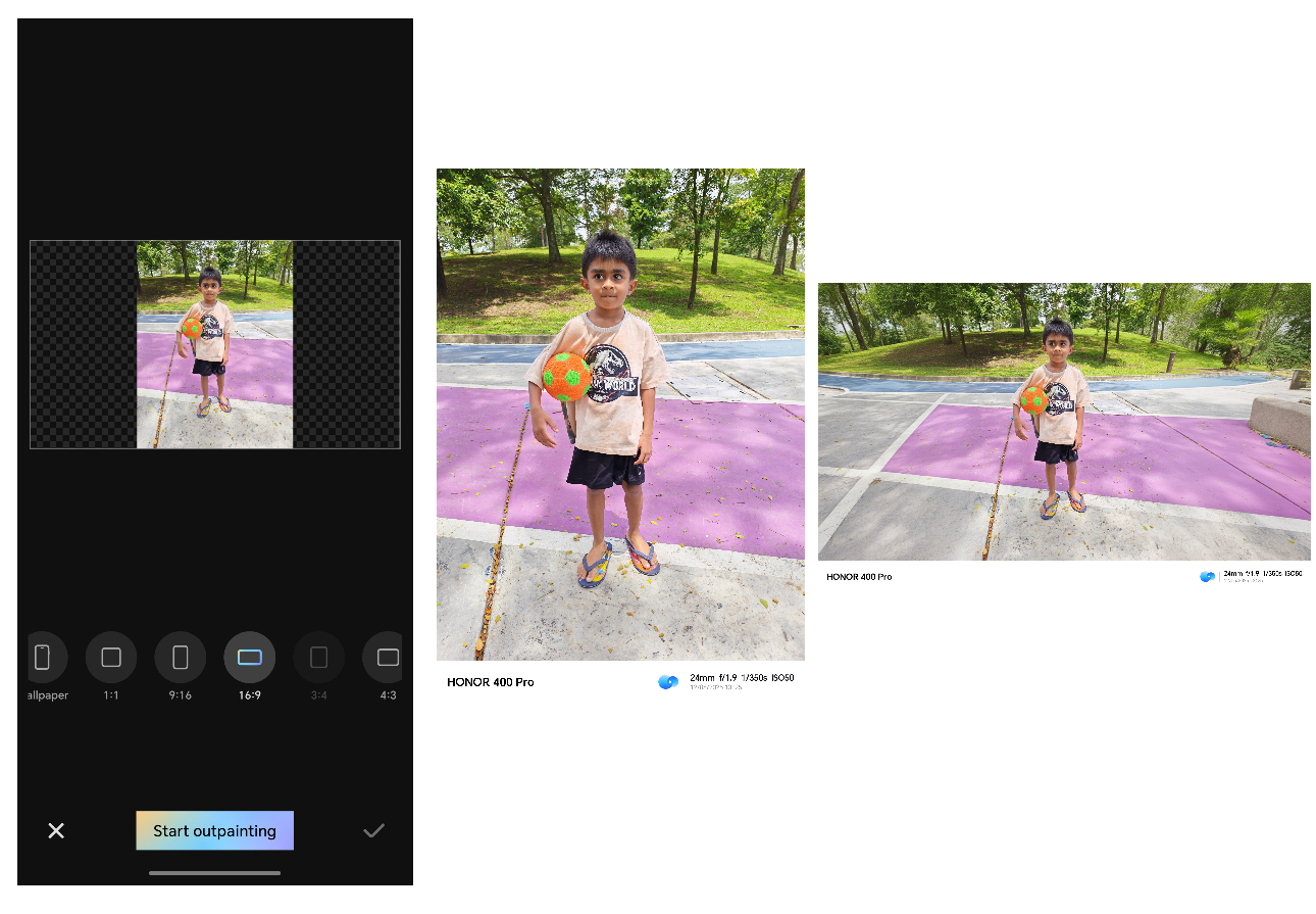 HONOR 400 Series juga dilengkapi dengan ciri AI Outpainting yang meluaskan sempadan imej secara pintar. Ianya sesuai untuk foto pemandangan, landskap, latar belakang atau gambar yang dipotong dan perlu diperluaskan.