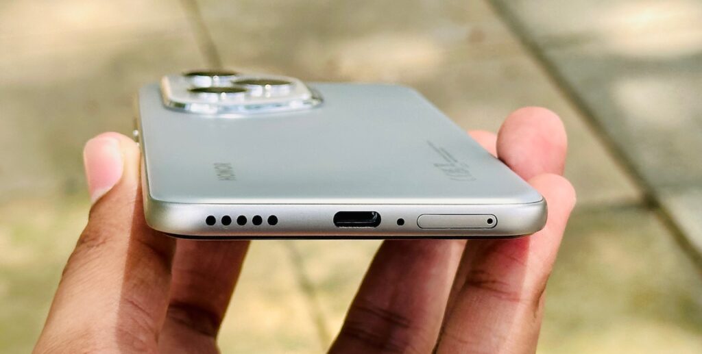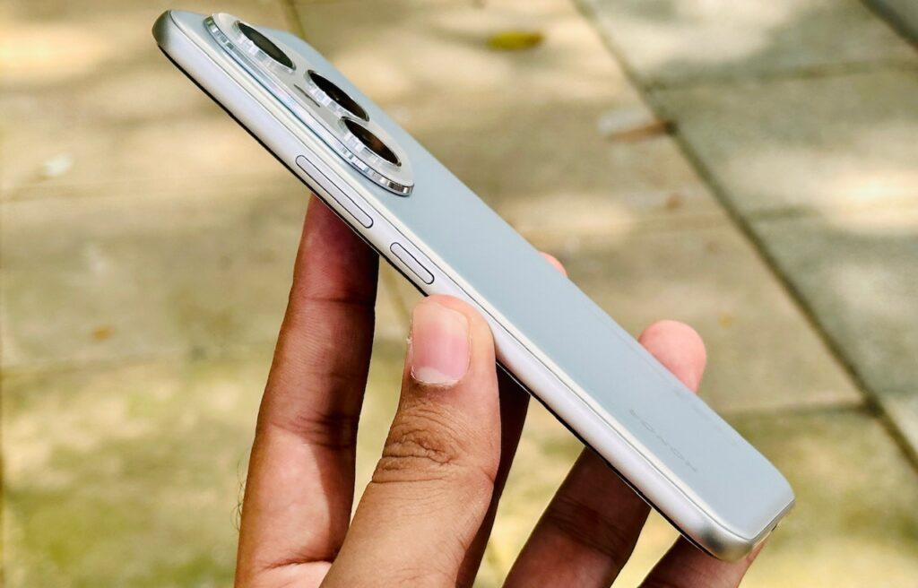 Pada bahagian sisi kanan, HONOR 400 Pro memiliki butang kuasa dan butang kelantangan bunyi, diikuti gril pembesar suara dan port usb-c pada bahagian bawah serta IR blaster, mikrofon dan satu lagi gril pembesar suara pada bahagian sisi atas peranti.
