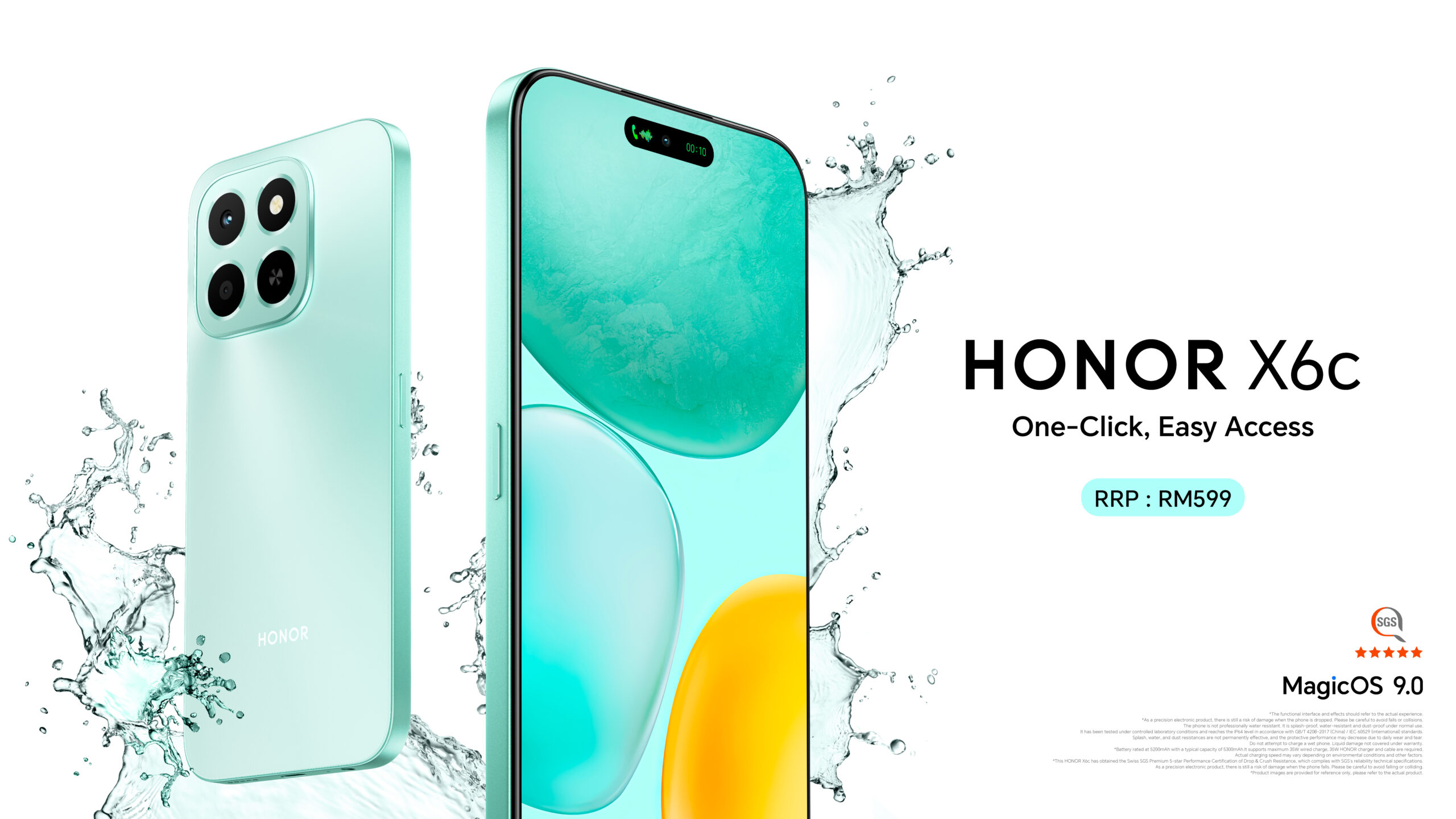HONOR X6c kini ditawarkan di HONOR Experience Stores di seluruh negara di dalam warna Ocean Cyan dan Midnight Black pada harga RM599.