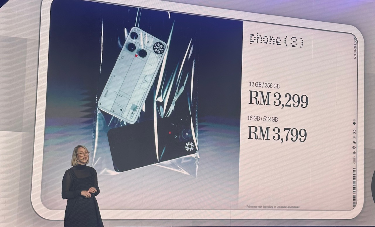 Nothing Phone (3) akan ditawarkan di dalam warna hitam dan putih pada harga RM 3,299 bagi versi 12/256GB dan RM 3,799 bagi versi 16/512GB.