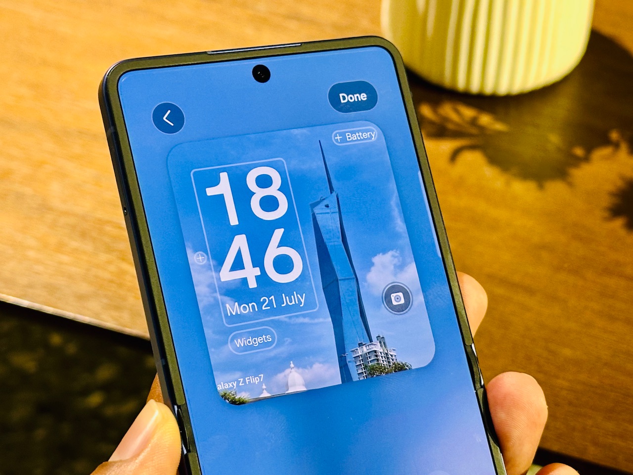 Untuk lebih personalisasi, FlexWindow pada Galaxy Z Flip7 juga membawakan ciri auto curated wallpaper menggunakan gambar yang anda ambil manakala one stretched font clock membolehkan anda melaras saiz jam pada wallpaper mengikut keperluan.