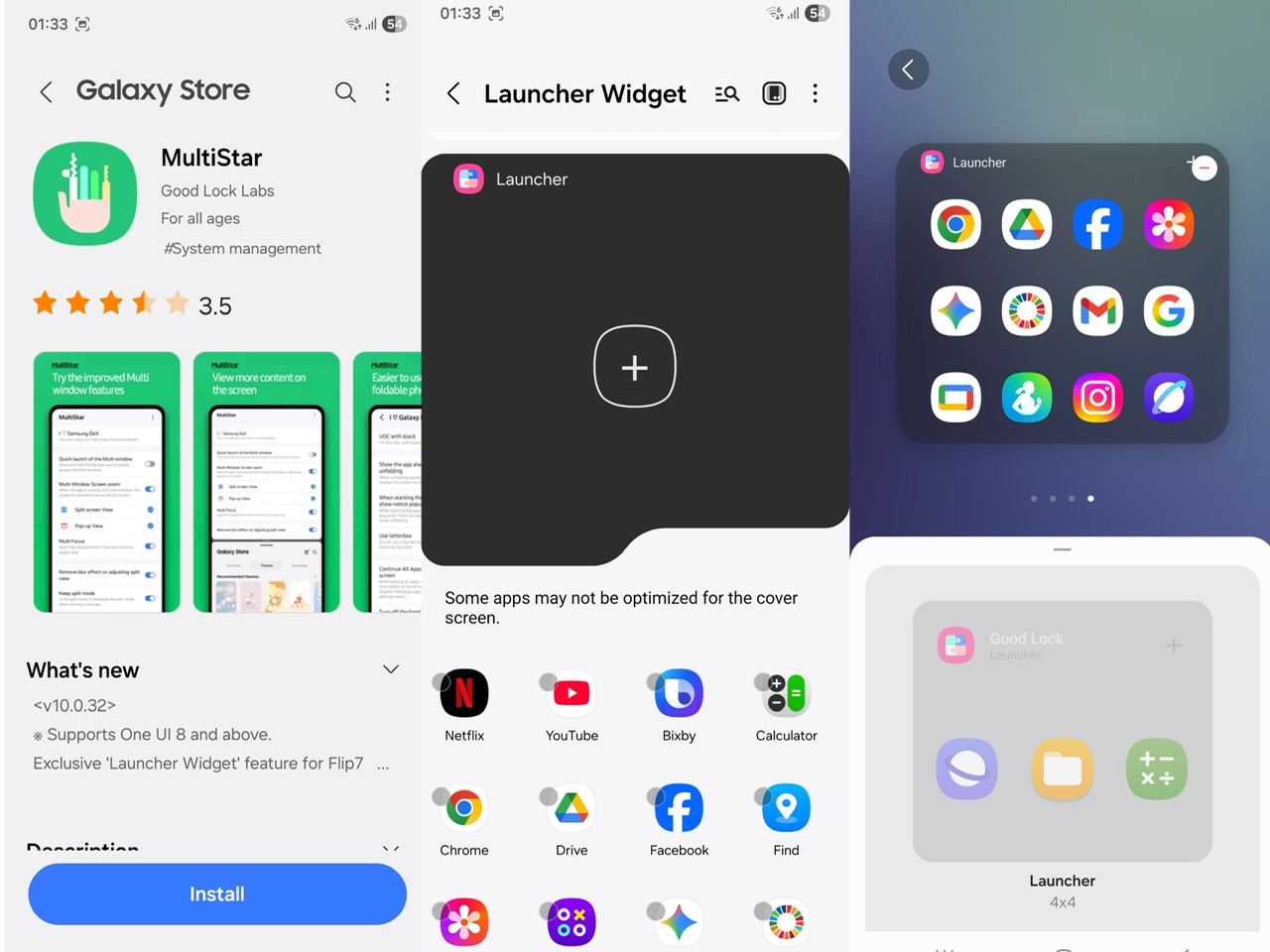 Tambahan terbaru pada Galaxy Z Flip7 ini adalah kebolehan untuk membuka hampir semua aplikasi yang anda miliki pada FlexWindow dengan memuatnaik aplikasi/widget Multistar di Galaxy Store. Ianya secara asasnya adalah sebuah launcher yang membolehkan anda membuka kesemua aplikasi terus pada FlexWindow.