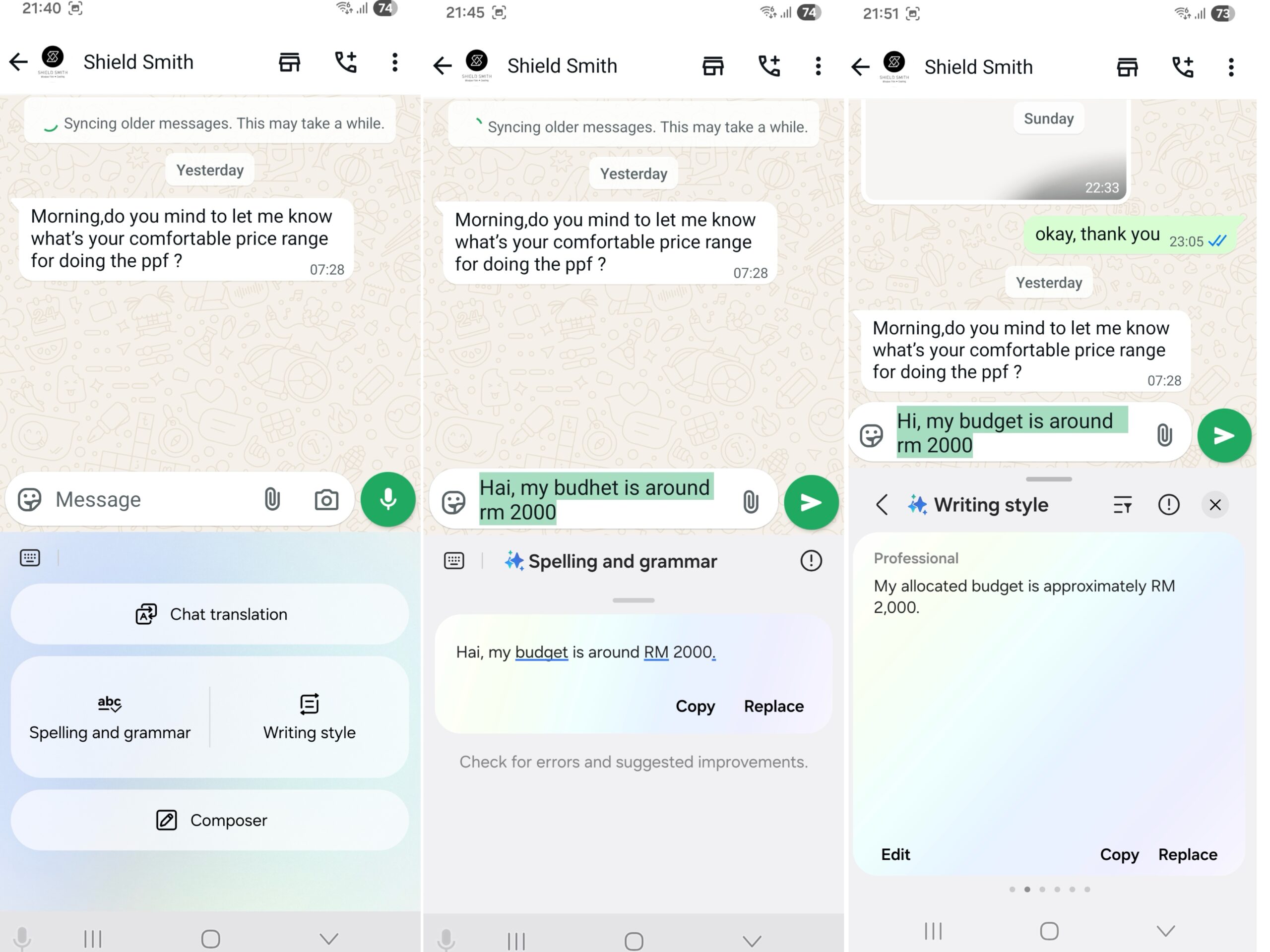 Untuk mesej dan aplikasi lain, Chat Assist menawarkan tiga ciri pada Galaxy Z Flip7 iaitu