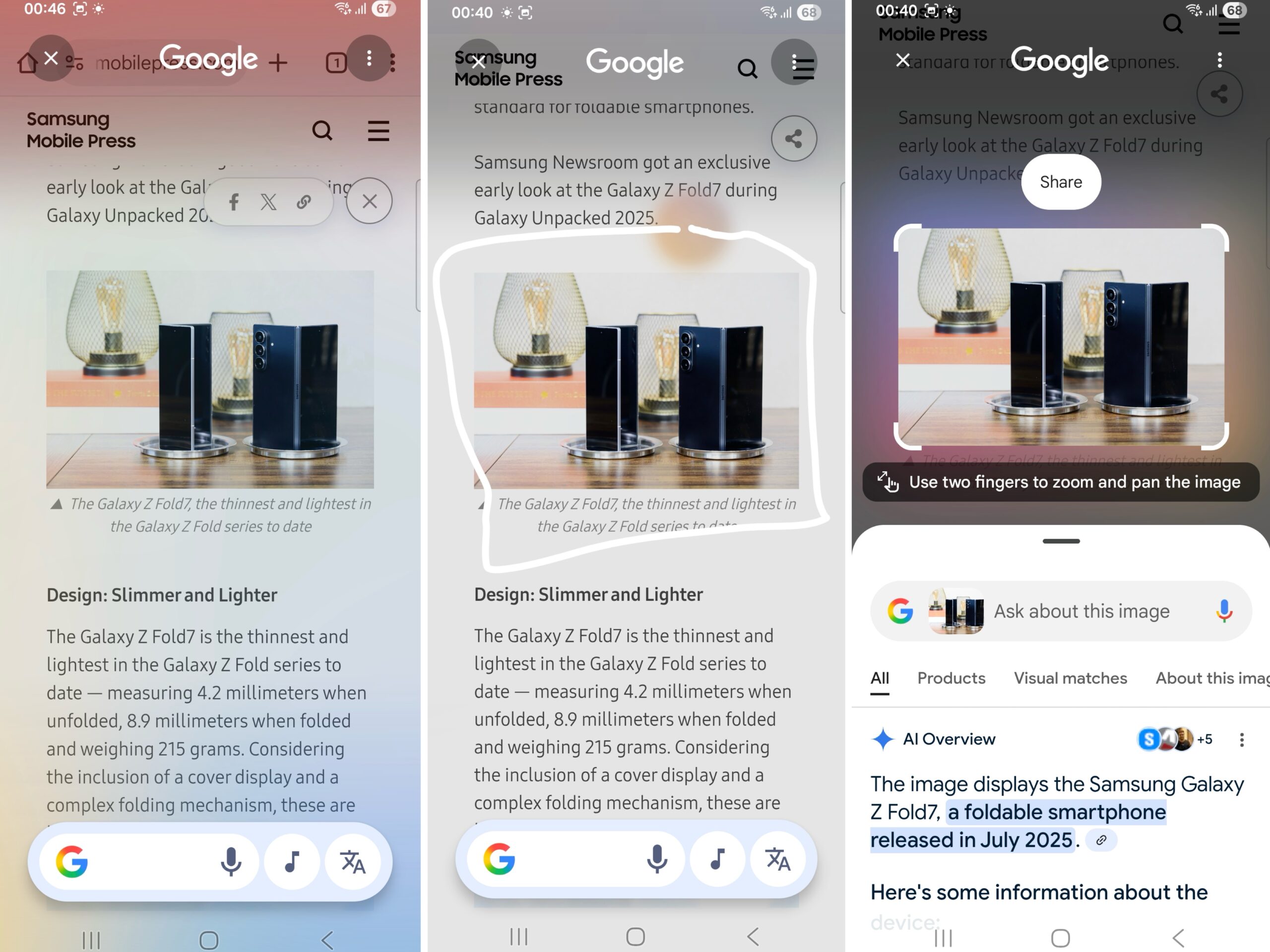 Lebih lanjut, Samsung Galaxy Z Flip7 Series juga hadir dengan ciri Circle to Search yang mana sesuai dengan namanya, anda boleh memulakan carian dengan menekan lama butang utama, pengguna boleh membulatkan sesuatu yang hendak dicari untuk melihat hasil carian berkualiti tinggi.