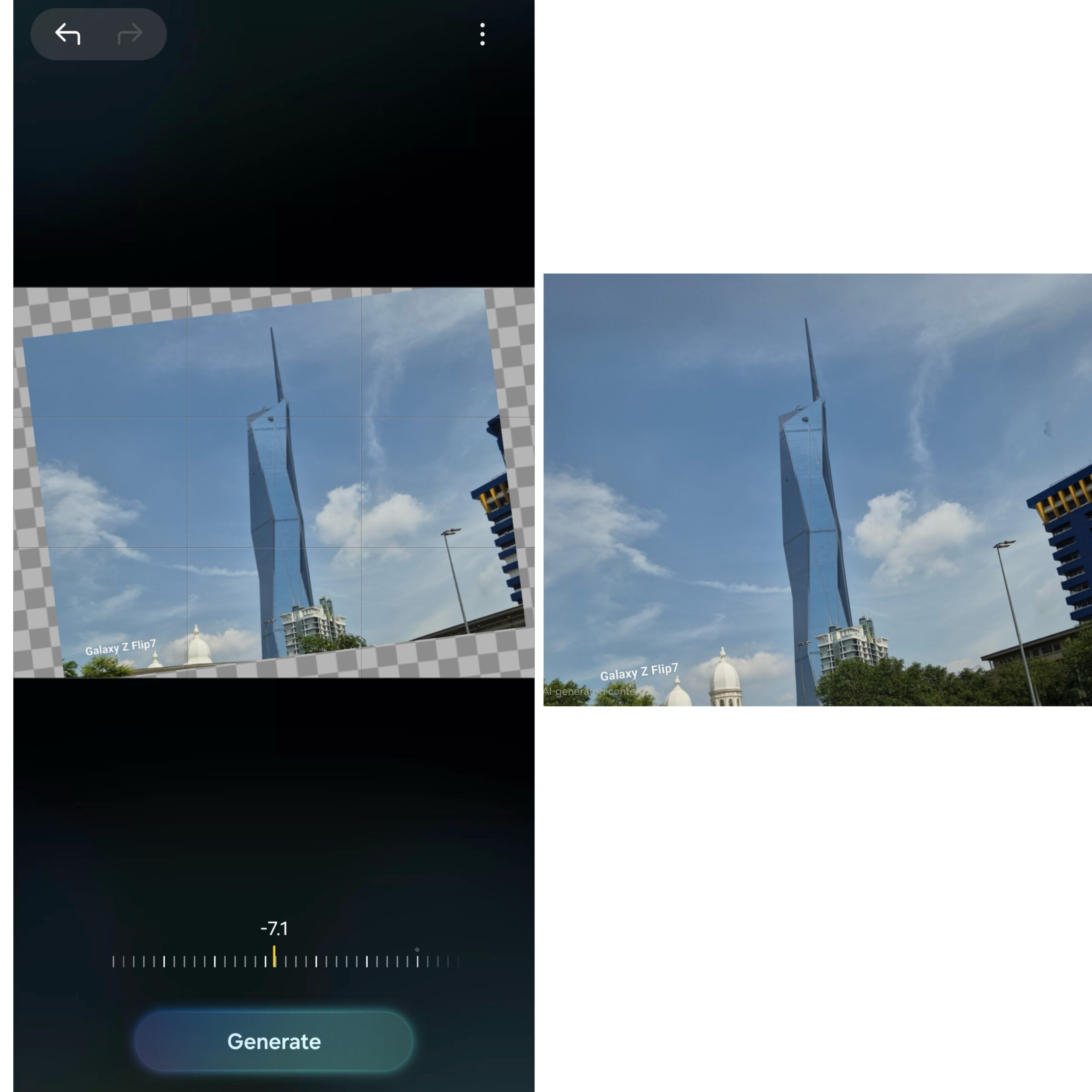 Satu lagi ciri Galaxy AI adalah pada gambar yang tercondong, AI akan mengisi semula sempadan untuk mendatarkan imej tersebut. Apabila objek perlu digerakkan sedikit untuk berada dalam kedudukan yang diingini, AI membolehkan pengguna melaraskan kedudukan subjek tersebut dan kemudiannya mengisi semula latar belakang.
