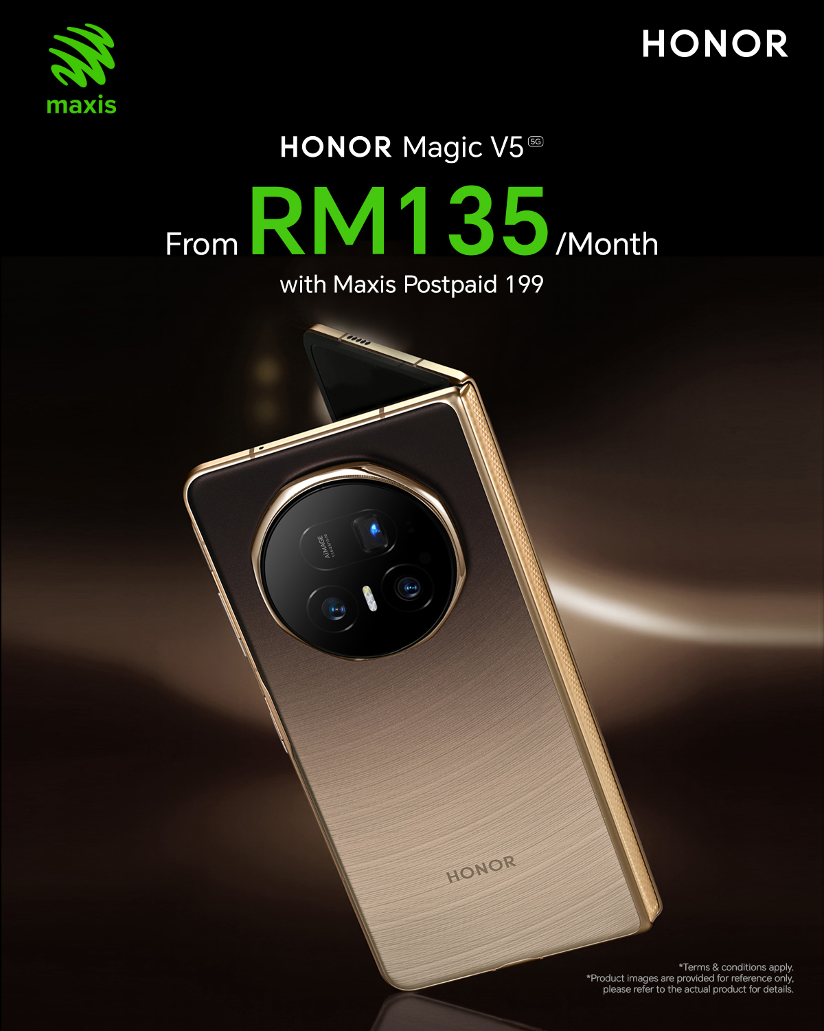 Pelanggan juga boleh memiliki HONOR Magic V5 pada harga bermula dari RM135 sebulan dengan pelan Maxis Postpaid. Untuk maklumat lanjut tentang tawaran menarik ini, layari laman sesawang rasmi Maxis.