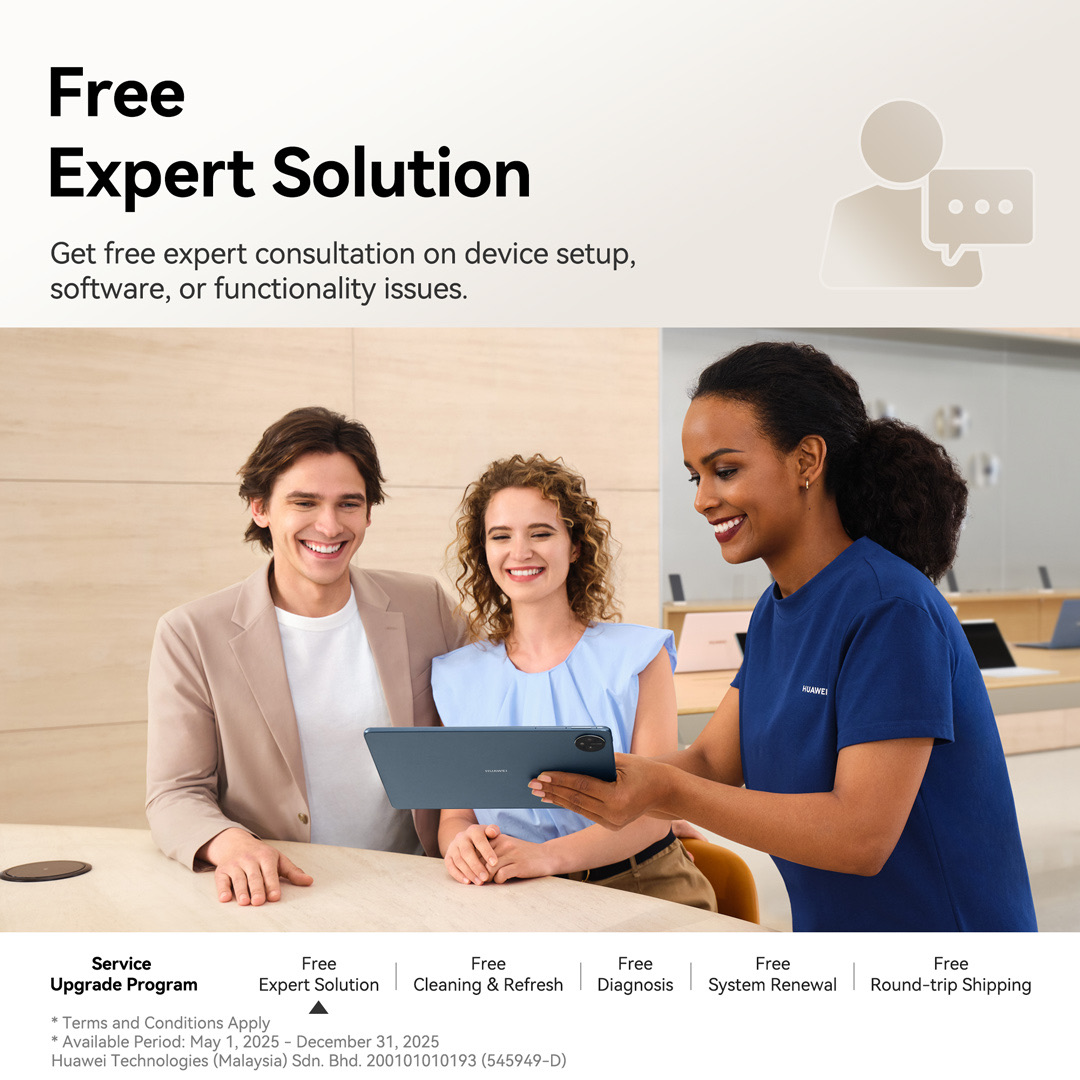Melalui inisiatif Service Upgrade ini, pemilik produk HUAWEI akan menerima 5 servis tambahan secara percuma yang bukan sahaja membantu anda berjimat malah memastikan peranti anda berada didalam keadaan yang tiptop!