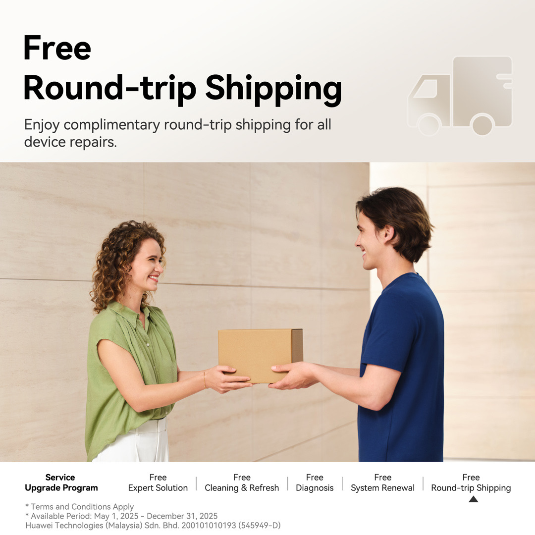 Walaubagaimanapun, jika keadaan tidak mengizinkan, HUAWEI berbesar hati untuk menawarkan pengambilan dan penghantaran peranti HUAWEI anda secara percuma.