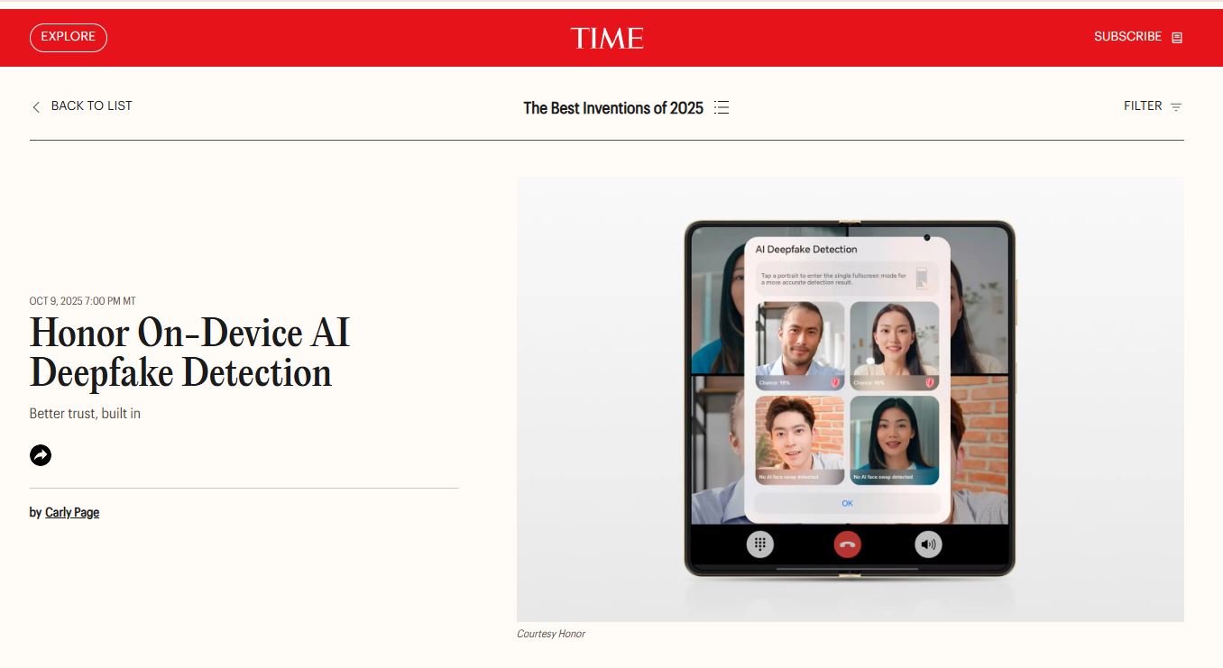 HONOR raih anugerah TIME Best Inventions 2025 bagi teknologi AI Deepfake dan bateri silikon karbon
