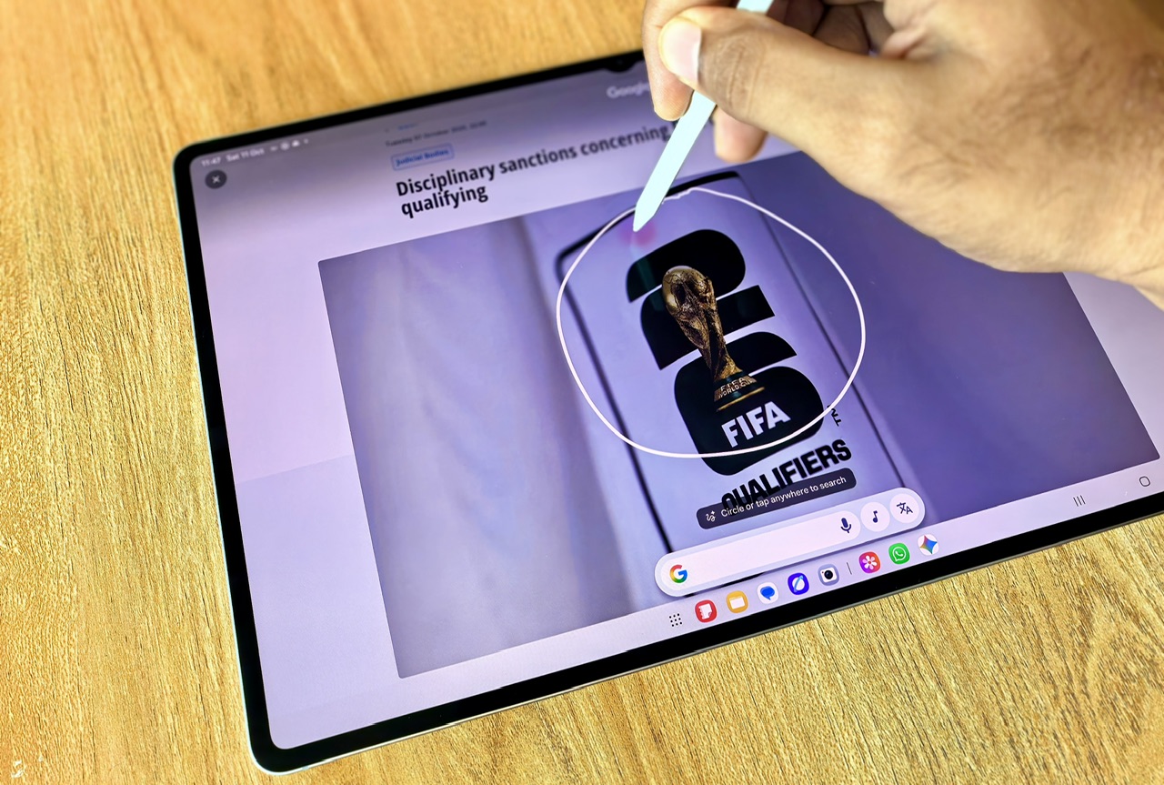 Lebih lanjut, Samsung Galaxy Tab S11 Ultra Series juga hadir dengan ciri Circle to Search yang mana sesuai dengan namanya, anda boleh memulakan carian dengan menekan lama butang utama (& S Pen) , pengguna boleh membulatkan sesuatu yang hendak dicari untuk melihat hasil carian berkualiti tinggi.