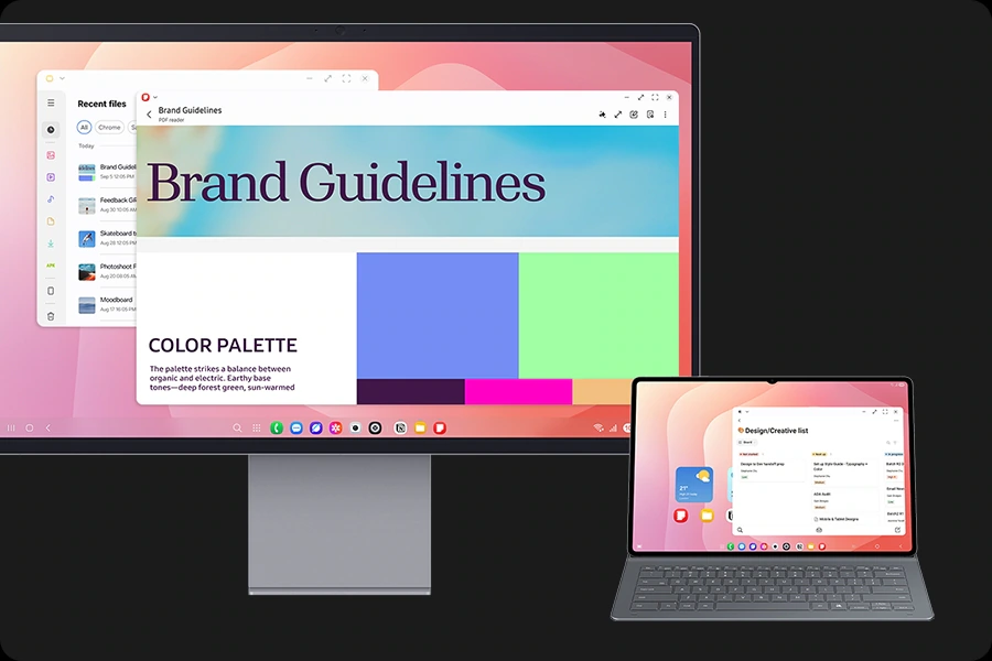 Samsung DeX membolehkan anda memanjangkan paparan Galaxy Tab S11 Ultra anda untuk mencipta persekitaran berbilang tugas yang lancar sehingga 4 ruang kerja. Alihkan aplikasi secara bebas dan mudah antara skrin untuk memastikan aliran kerja anda lancar dan cekap. Tingkatkan produktiviti anda dengan pengalaman berbilang skrin sambil anda ‘drag & drop’ tetingkap antara skrin, atau nikmati kandungan yang disimpan pada Galaxy Tab S11 Ultra anda dalam tetapan teater rumah dengan ciri ‘mirroring’ ke monitor anda.