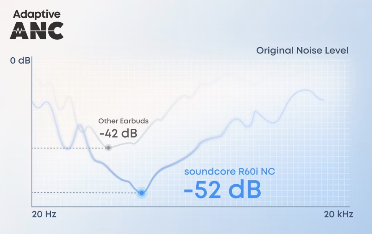 R60i NC mentakrifkan semula kawalan bunyi hingar dengan Adaptive ANC yang melaraskan secara bijak setiap 0.007 saat untuk menganalisis dan menyekat bunyi hingar persekitaran sehingga -52dB. Algoritma berbilang jalur canggihnya memastikan pengurangan hingar yang lebih tepat merentasi frekuensi yang berbeza, daripada deruman enjin rendah hinggalah bunyi gemuruh bernada tinggi, memastikan audio yang anda dengar jelas, konsisten dan tidak terganggu dalam apa jua persekitaran.