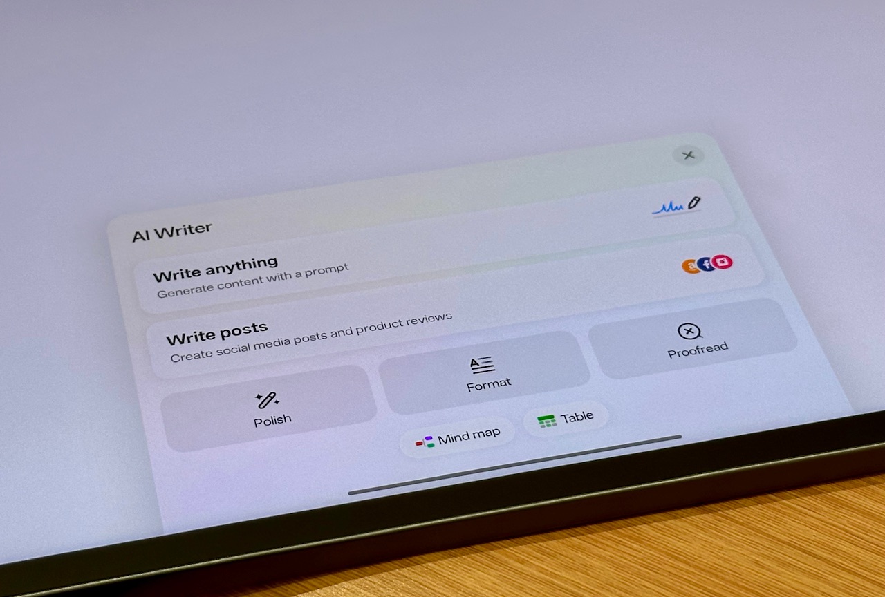 Handwriting Formula Calculation membolehkan anda menyelesaikan pengiraan matematik bertulis secara terus di dalam aplikasi Notes. Tulis formula dengan Pencil 2R dan AI akan mengendalikan pengiraan yang menawarkan proses penyelesaian masalah kekal pantas dan tidak terganggu semasa kelas, ulang kaji, atau mesyuarat.