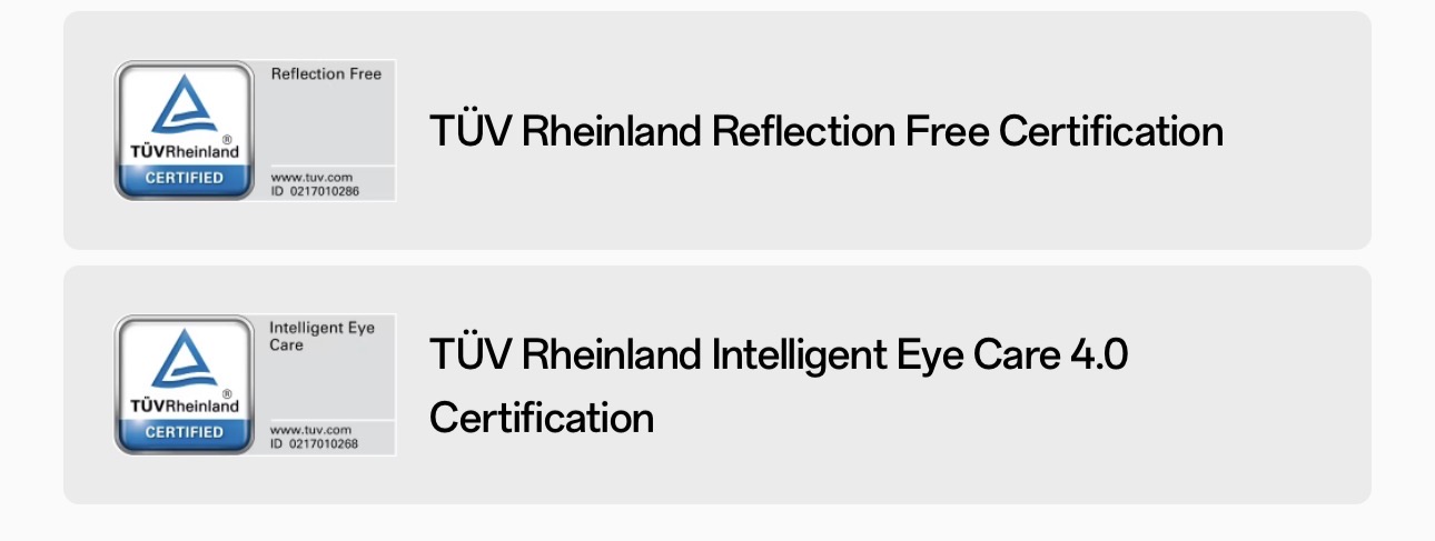 Tidak seperti filem matte biasa yang boleh mengurangkan kejelasan visual, paparan generasi baharu ini mengekalkan definisi supaya teks halus , gambar dan warna tetap konsisten. Ia juga menerima pensijilan TÜV Rheinland Reflection Free dan TÜV Rheinland Intelligent Eye Care 4.0, menawarkan perlindungan cahaya biru (hardware level) untuk penggunaan yang lebih selesa.