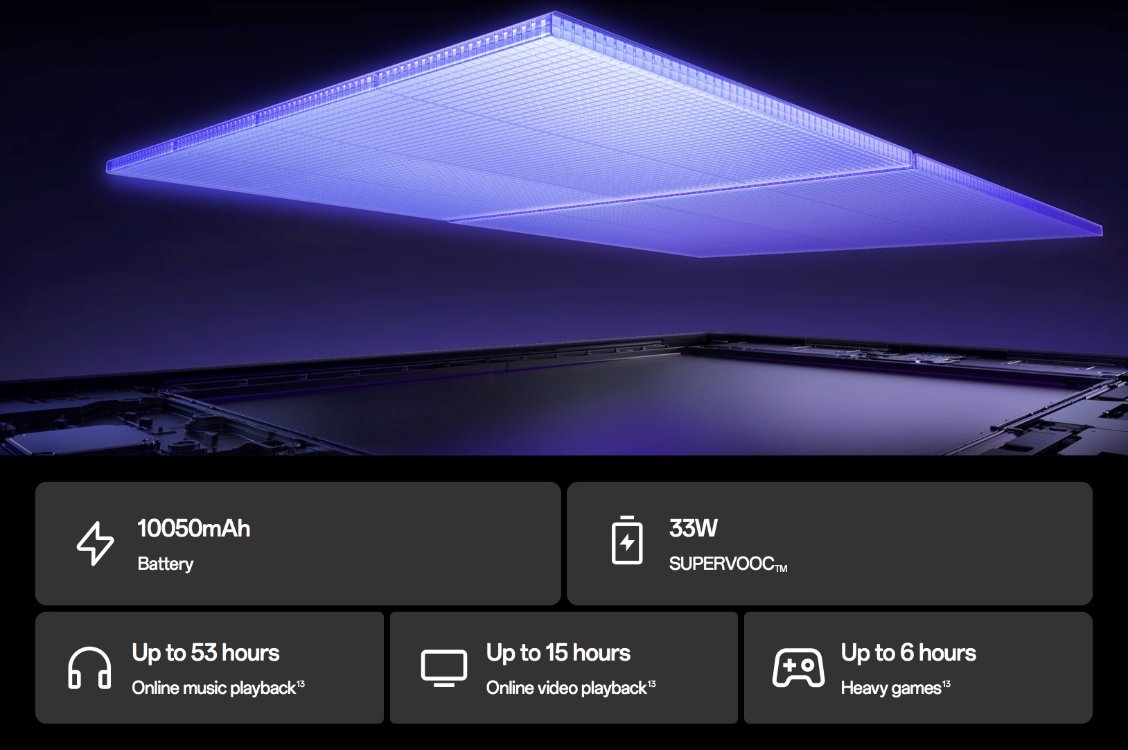 Selain itu, tablet ini juga hadir dengan pengecasan pantas SUPERVOOC 33W untuk pengecasan semula yang pantas.
