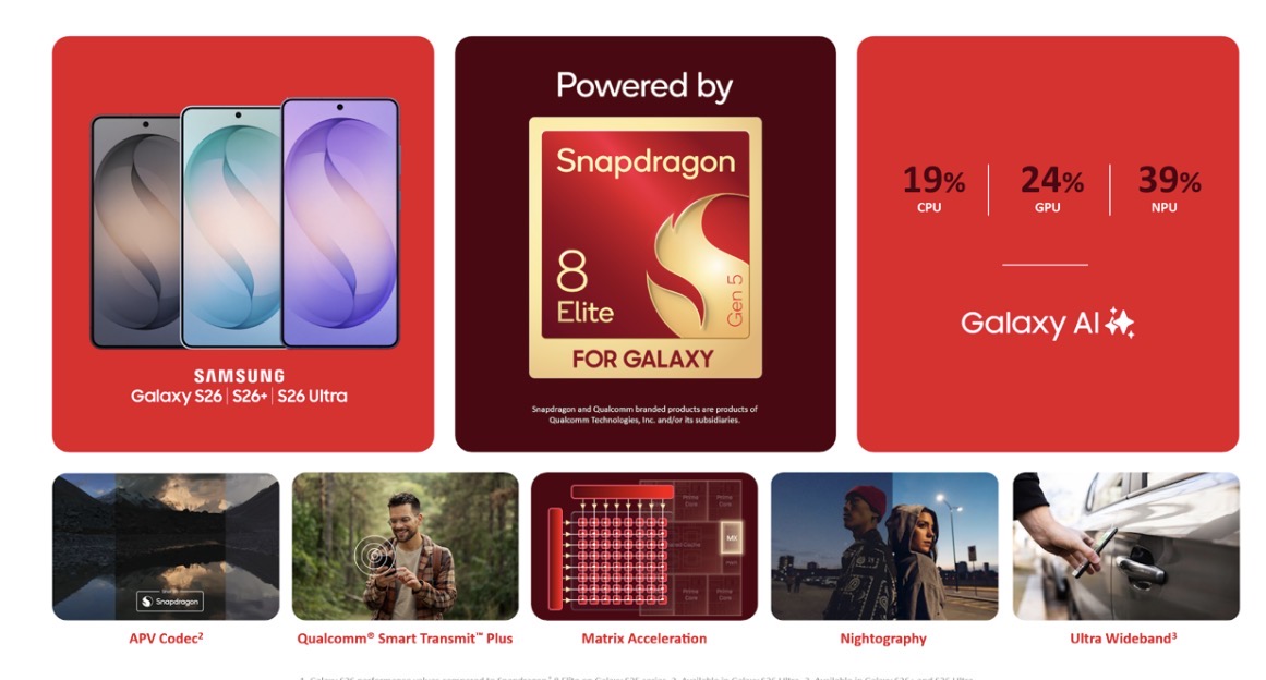 Selain itu,  Galaxy S26 Ultra menawarkan prestasi paling berkuasa dalam siri Galaxy S setakat ini dengan peningkatan ketara pada CPU, GPU dan NPU bagi memberikan pengalaman yang lebih pantas dan lancar, memastikan peranti mampu mengikuti penggunaan sepanjang hari.