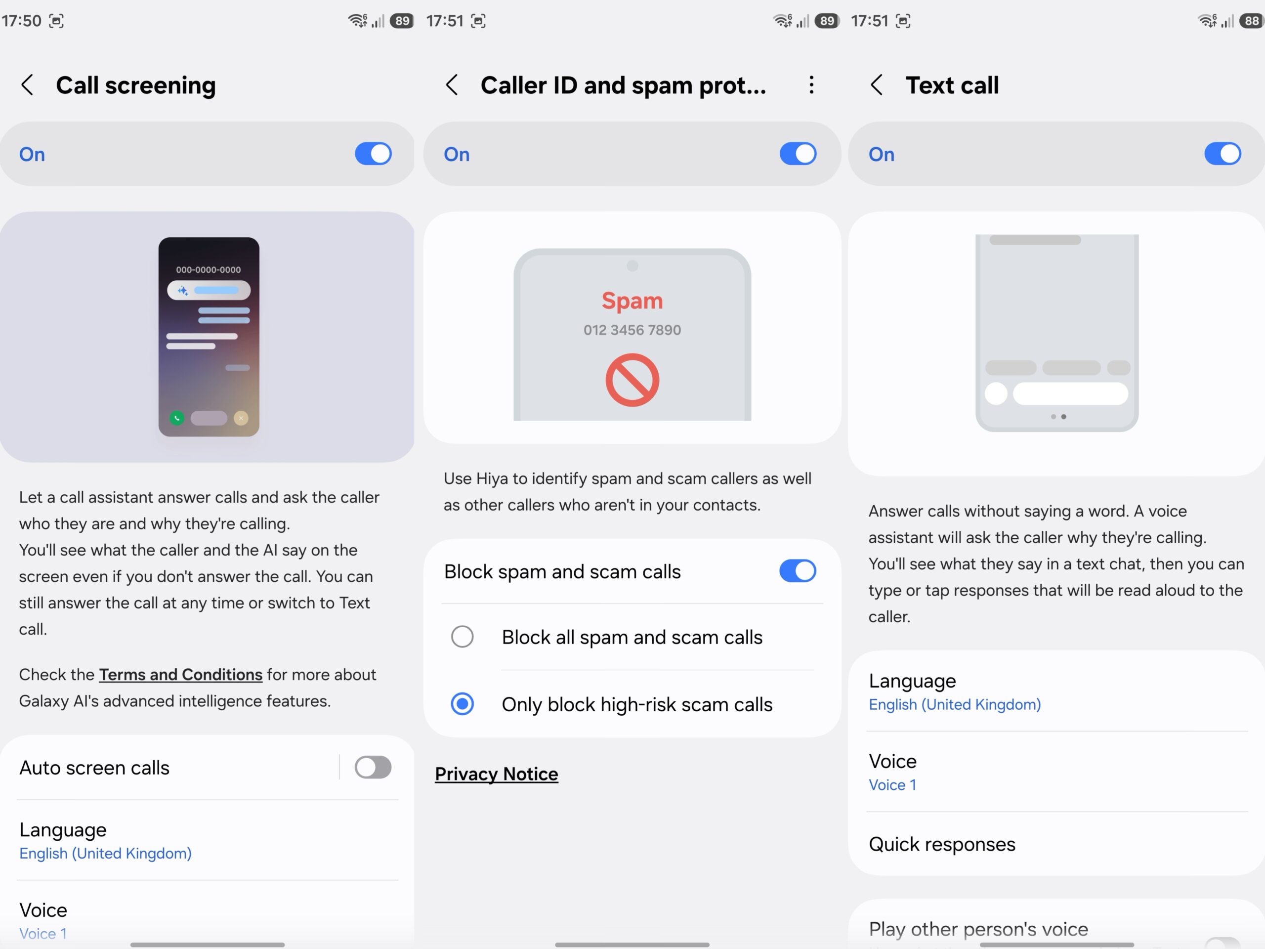 Ciri Call Screening pada Galaxy S26 Ultra membolehkan Call Assistant menjawab panggilan bagi pihak anda dan bertanya kepada pemanggil siapa mereka serta tujuan mereka menelefon. Anda boleh melihat perbualan antara pemanggil dan AI dipaparkan pada skrin walaupun anda tidak menjawab panggilan tersebut. Anda juga boleh menjawab panggilan pada bila-bila masa atau menukar kepada Text Call.