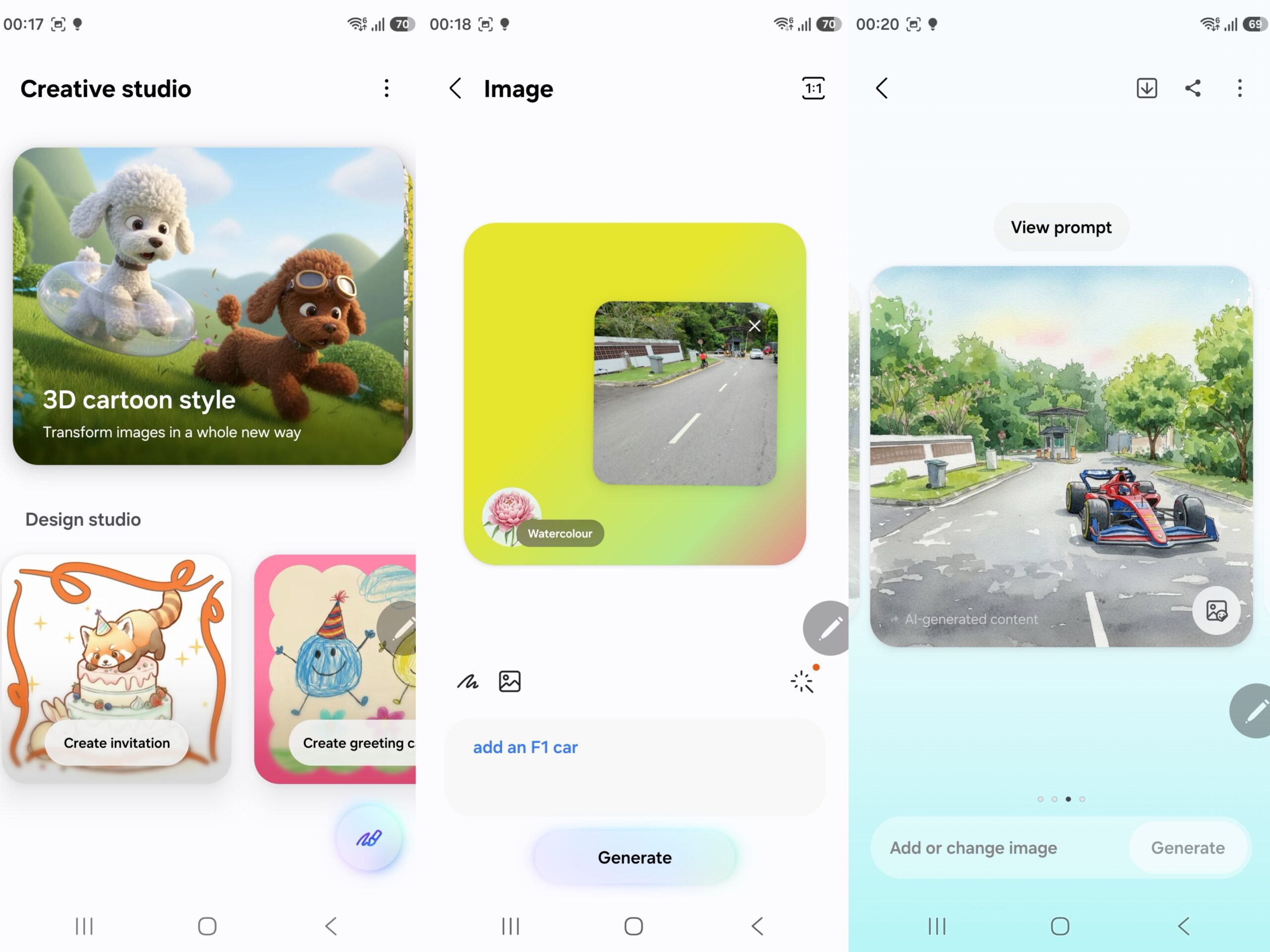 Dalam pada itu pada Creative Studio pula, foto yang telah disunting boleh ditukar menjadi kandungan yang lebih kemas dan menarik. Pengguna hanya perlu menaip arahan seperti “add an F1 car” untuk menjana gambar seperti yang anda mahu.
