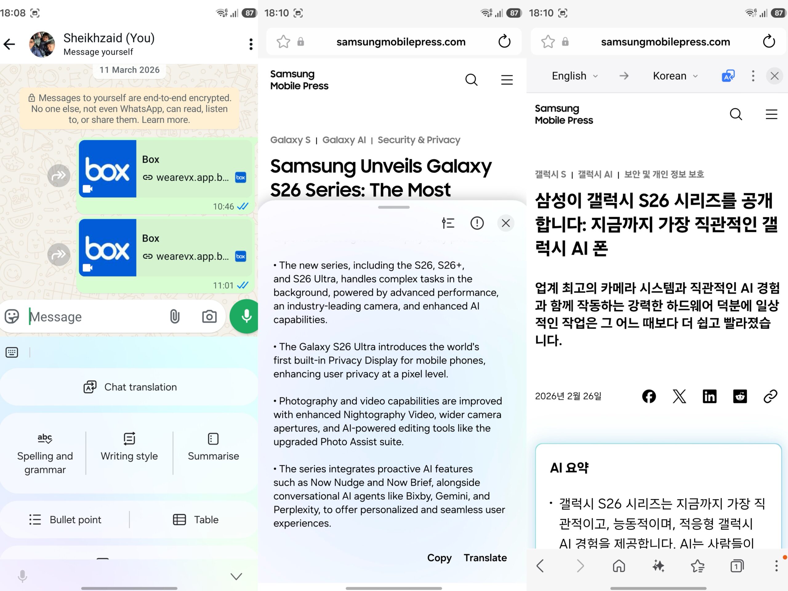 Selain daripada beberapa ciri baharu Galaxy AI seperti diatas, Galaxy S26 Ultra juga hadir dengan ciri Galaxy AI yang popular yang telah ditambahbaik seperti Live Translate, Chat Assist , Note Assist dalam Samsung Notes dan Transcript Assist.