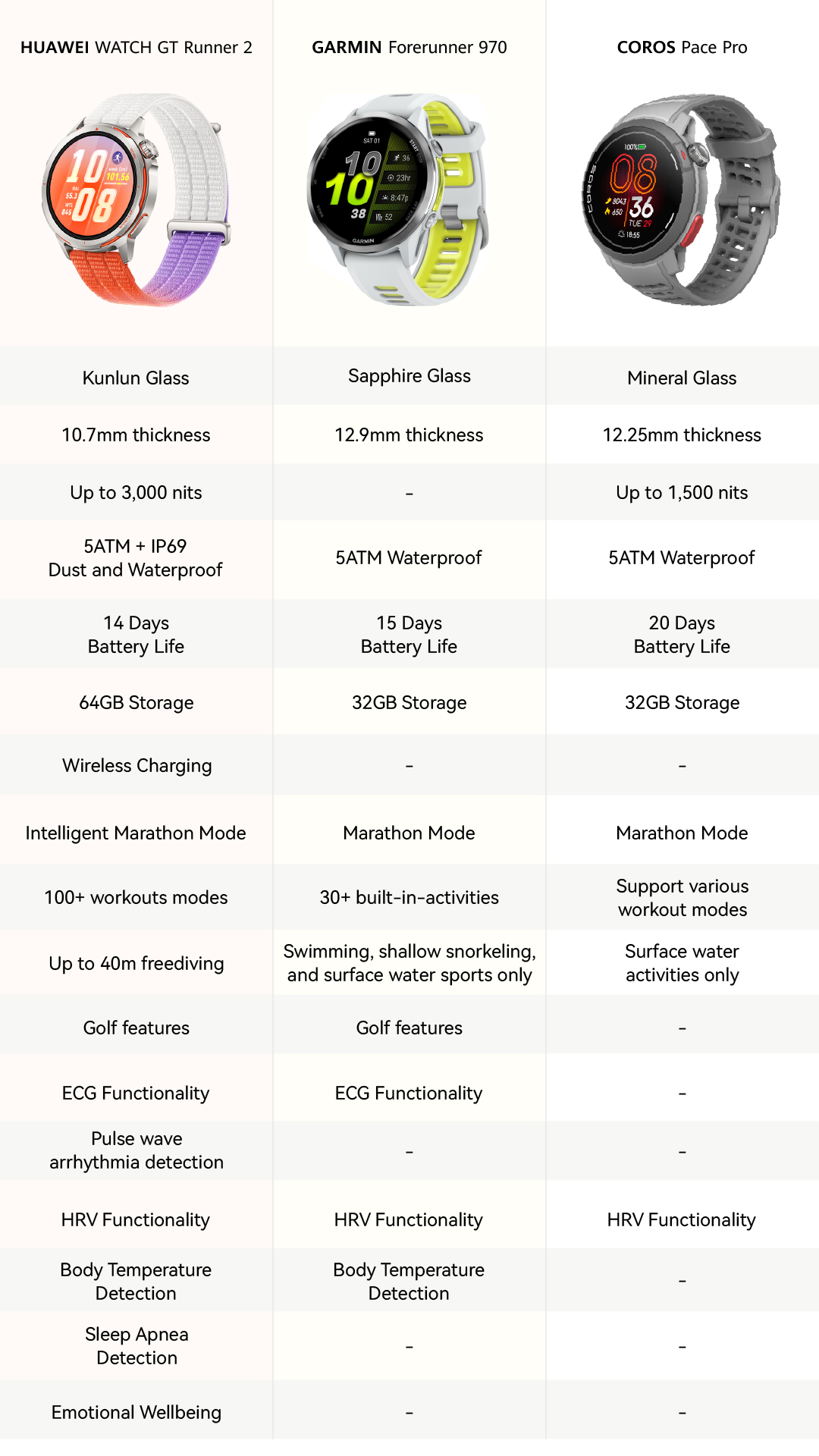 HUAWEI WATCH GT Runner 2 dihasilkan dengan penggunaan bahan aloi titanium gred aeroangkasa yang menjadikannya sangat ringan namun mempunyai ketahanan bertaraf profesional. Selain itu, Kunlun Glass Generasi Ke-2 pula menawarkan ketahanan hentakan 20 kali ganda berbanding kaca biasa, memastikan perlindungan maksimum tanpa penambahan kepada berat peranti.